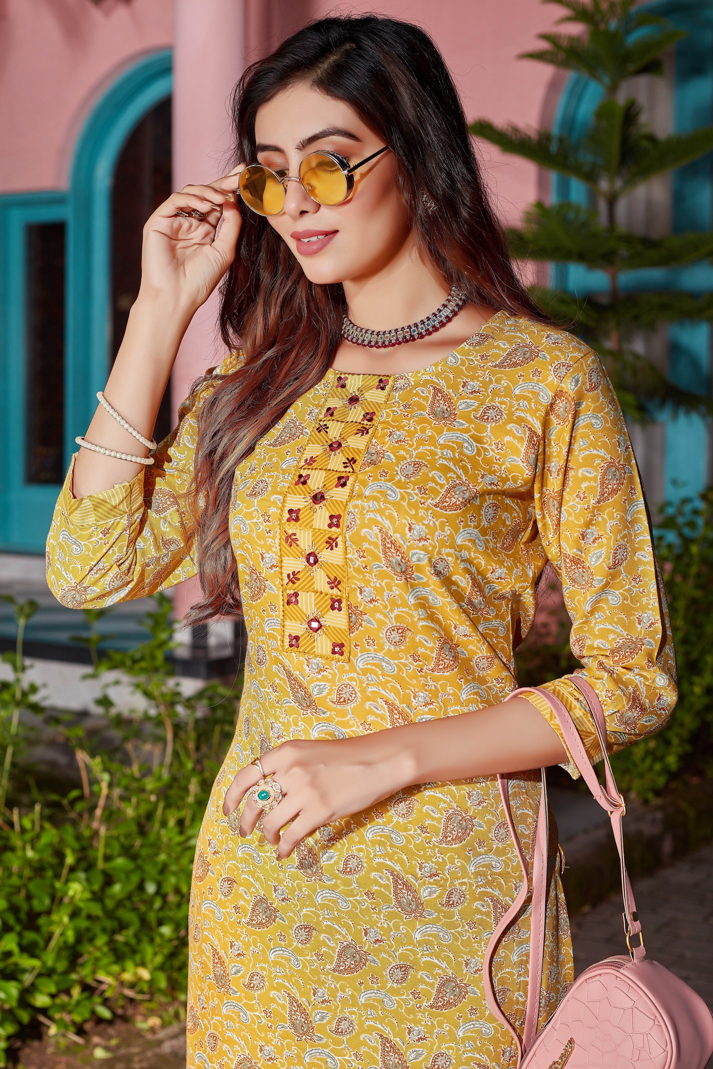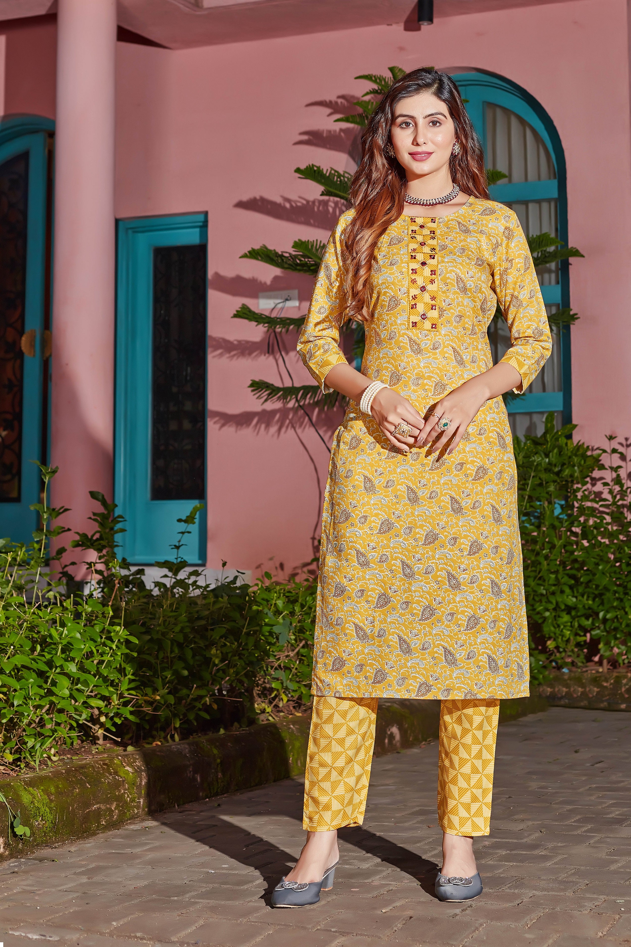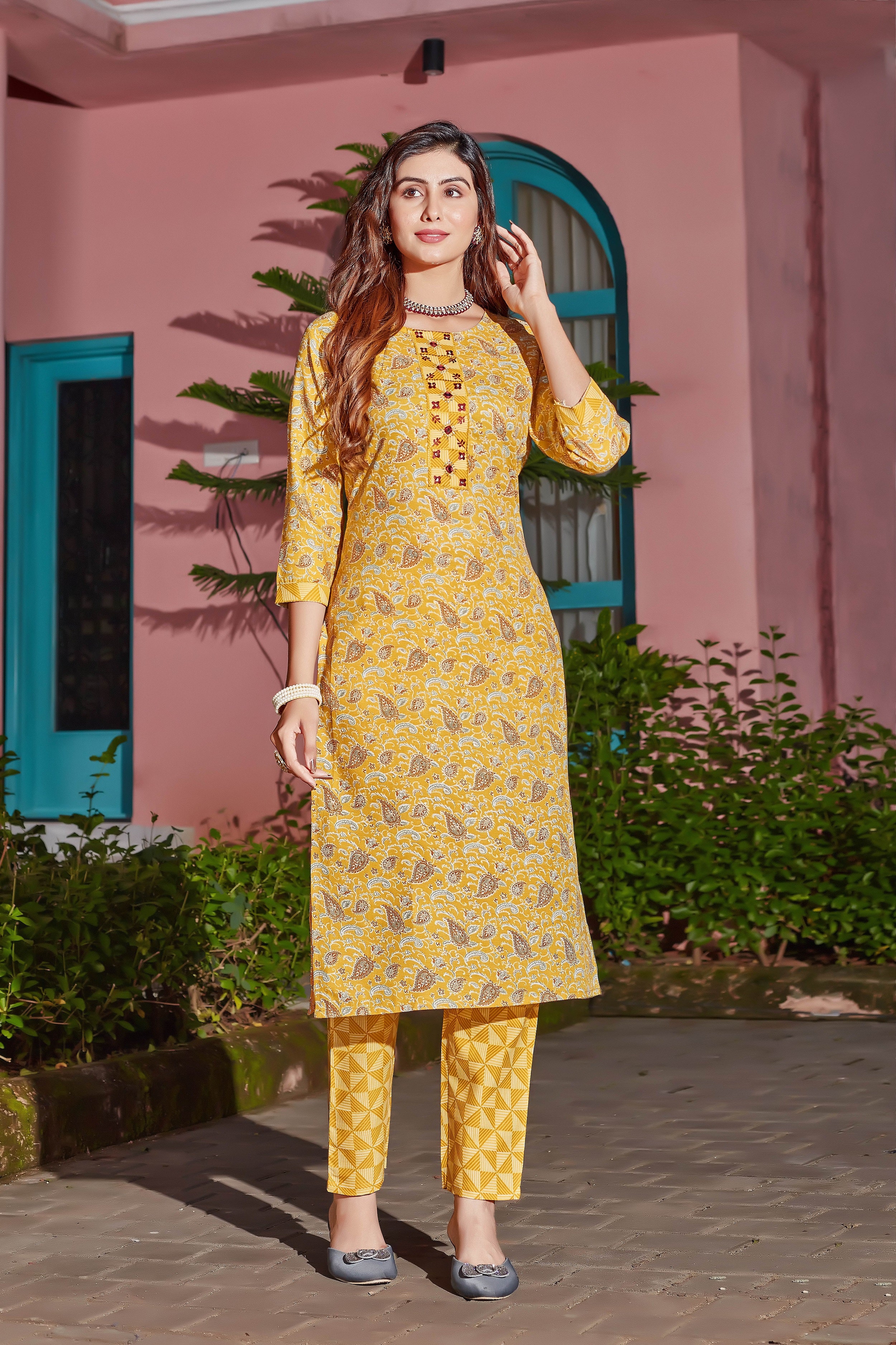 Step into sunshine with this stunning mustard cotton blend kurta set from Salwar Love! 💛
