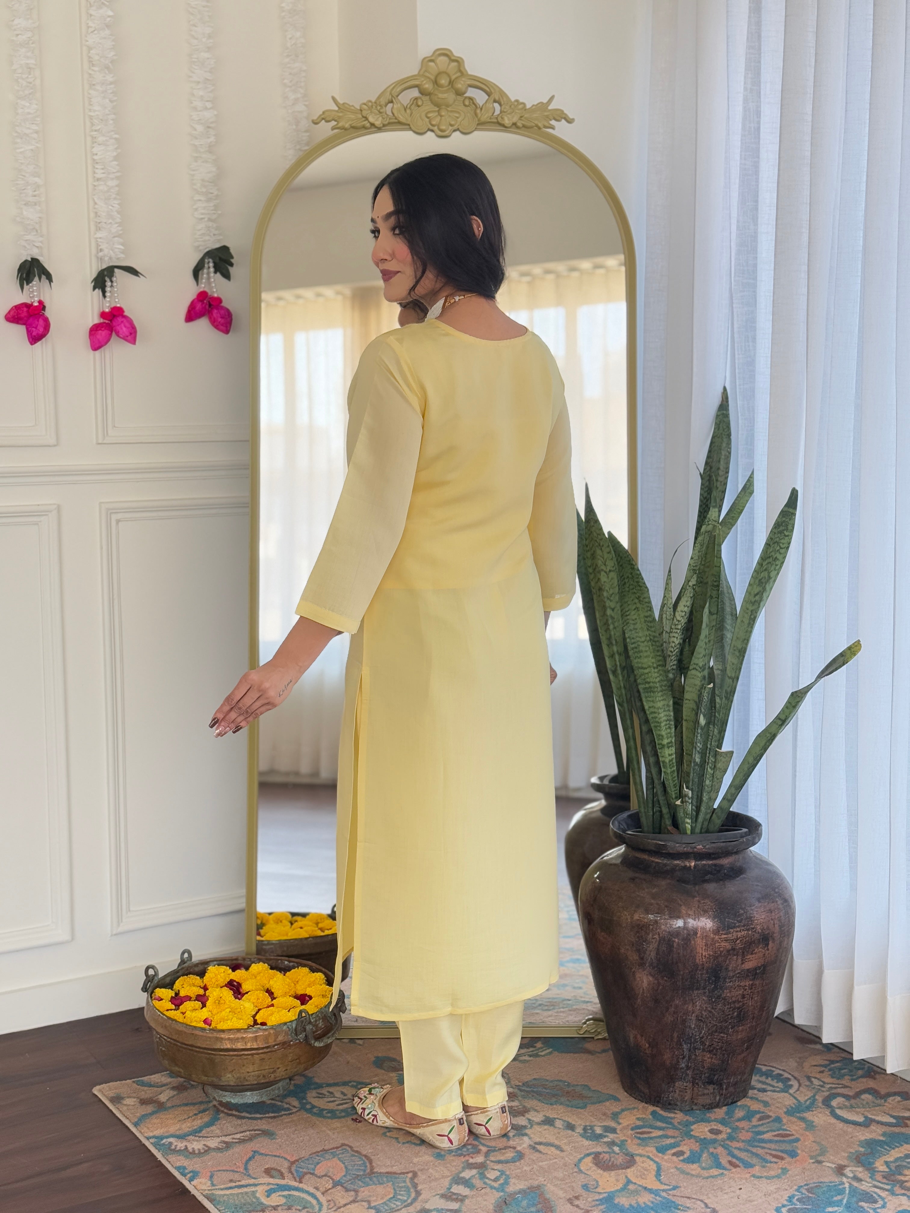 Bring freshness and festive charm to your wardrobe with this elegant yellow viscose chanderi suit set. Featuring intricate embroidery on the neckline and a regal green jacquard dupatta with floral detailing, it’s a perfect blend of tradition and trend! 🌸👑